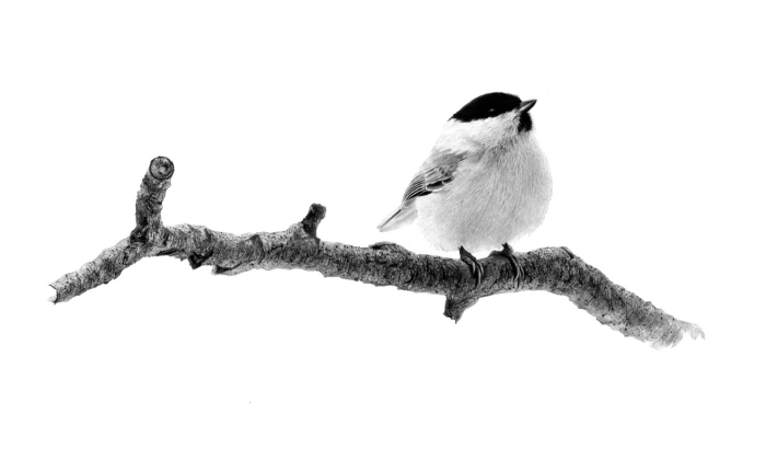 「ハシブトガラ」冬の森を駆けるエゾリス。凍風に耐えるスズメ。果てなき原野を彷徨うオオカミ。