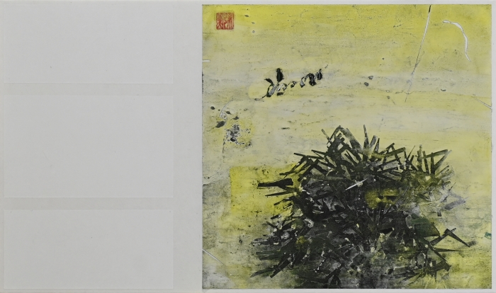 王 培「和草(にこぐさ)」F8号 白麻紙、箔、岩絵具、墨
