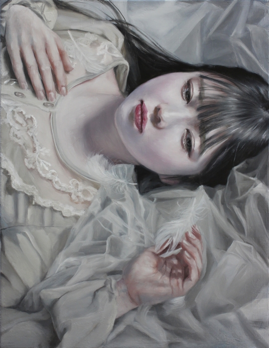 また、京都で新たなモデルとの出会いも重なり、表現の幅はさらに広がりつつある。より深く描きたいものへと向かう姿勢とここ10年の国内外の経験が、これからの展開への大いなる期待につながる。