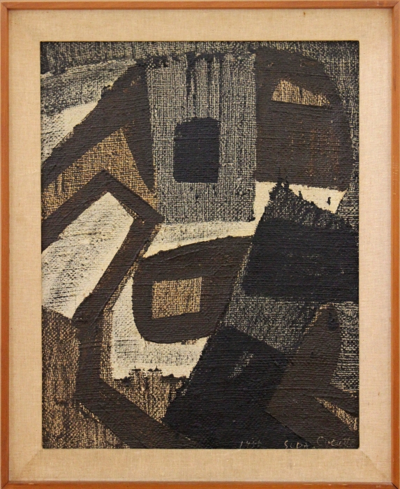須田 剋太「抽象(作品D25)」縦65.0×横51.0 cm 15号 麻袋・油彩・C-72 1955年2月作