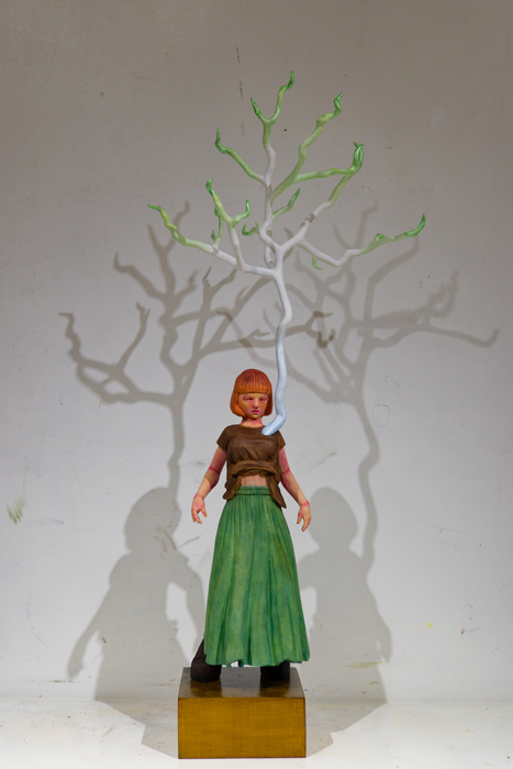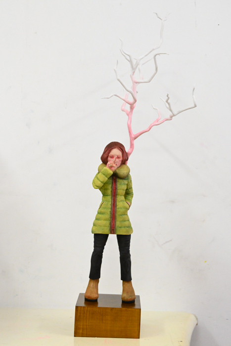 舩木大輔「勇気を出しても生えないこともある。」 H64.5×W23×D25cm 檜に着彩
